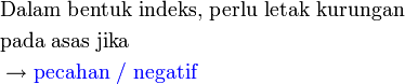 akan bermaksud indeks hanya untuk kemudian baru ada negatif di depan.