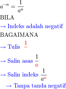 | Bentuk Indeks | Bentuk Pecahan |