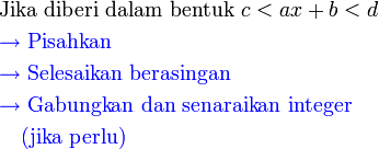 Gabungkan ketaksamaan berikut dan senaraikan semua integer
