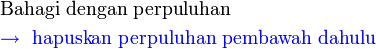 - Hapuskan perpuluhan di pembawah jika bahagi perpuluhan