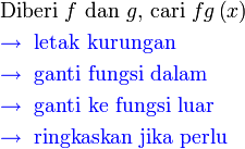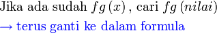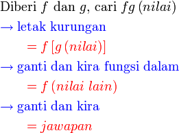 - Sebelum kita teruskan ke mencari fungsi gubahan, kita latih langkah yang paling mengelirukan, iaitu mengantikan objek (selain dari nilai biasa) ke dalam fungsi luar.