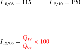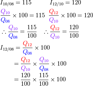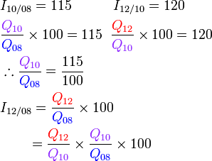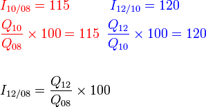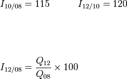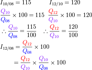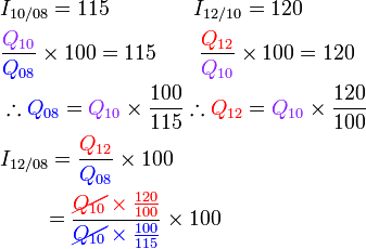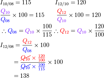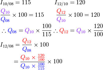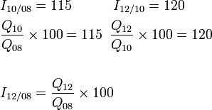 Indeks harga bagi A bagi tahun 2010 berasaskan 2008 ialah 125. Indeks harga bagi B bagi tahun 2010 berasaskan 2008 ialah 95.