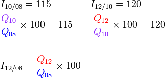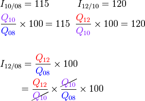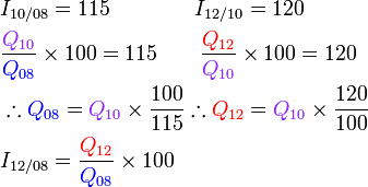 PeneranganKita juga boleh balik kepada asas indeks harga, iaitu perubahan peratus pada harga ◀Kita lukis satu gambarajah untuk menunjukkan perubahan harga ▼▶Dari 08 ke 10 ▼▶Dari 10 ke 12 ▼▶Dari 08 ke 12 ▼▶ ialah ▶ ialah ▶ ialah (JANGAN LUPA), maka▶Perhatikan apa cara pun yang kita gunakan, ▶Perhatikan apa cara pun yang kita gunakan, semak bahawa jawapan adalah logik ◀Jika mendapat indeks harga seperti 1.38 atau 13800, jelas ada kesilapan/terlupa dengan 100