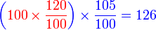 100 ditambah 20% , kemudian tambah 5%