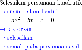 - Perhatikan perbezaan besar antara langkah menyelesaikan persamaan linear dengan kuadratik