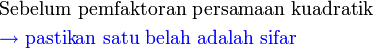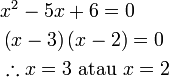 Penyelesaian Persamaan Kuadratik dengan Pemfaktoran