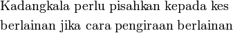 Jadi bukan 4 tapi hanya 2 untukJadi bukan 4 tapi hanya 2 untuk keseluruhan dua tempat ituMengapakah 2 x 2 salah?2 x 2 seakan-akan ada2 x 2 seakan-akan ada 2 cara mengisi yang pertama, kemudian selepas itu2 x 2 seakan-akan ada 2 cara mengisi yang pertama, kemudian selepas itu, masih ada 2 lagi pilihanYang sebenarnya berlaku adalah, Yang sebenarnya berlaku adalah, selepas 2 cara mengisi yang pertamaYang sebenarnya berlaku adalah, selepas 2 cara mengisi yang pertama, hanya tinggal 1 pilihan untuk yang keduaJadi sepatutnyaAtau lebih senang kita lihat dua tempat ini sekali gusDua huruf untuk dua tempat, jadiAtau atau terus pun bolehSelainnyaJadi
