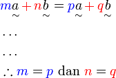 PeneranganKita perlu pastikan keadaan sememangnya yang membolehkan kita terus membandingkan pekaliVektor tidak selari diberiDiberi dua vektor (yang terdiri dari gabungan vektor-vektor tadi) adalah SAMAJadi sememangnya boleh terus bandingPerhatikan kita tidak patut tulis vektornya sudah, kita terus bandingkan pekaliManakala