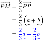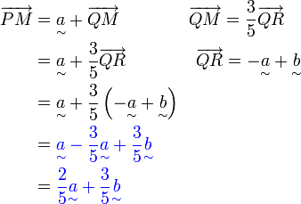 PeneranganPerhatikan nombor yang ditulis di atas garisPerhatikan nombor yang ditulis di atas garis mewakili nisbah bahagian-bahagain garis dan bukan panjang sebenarKita dapat lihat bahawa vektor Kita dapat lihat bahawa vektor adalah sebahagian daripada Kita dapat lihat bahawa vektor adalah sebahagian daripada "mempunyai nisbah panjang" Manakala Manakala "mempunyai nisbah panjang" Manakala "mempunyai nisbah panjang" (iaitu 1+1)Jadi pecahan yang patut ditulisManakaladenganJadi