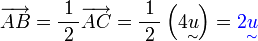Iaitu pada arah yang sama tetapi panjangnya setengah daripada yang asal