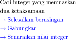 Gabungkan ketaksamaan berikut dan senaraikan semua integer