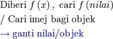 Biasanya untuk label fungsi, kita akan guna huruf
