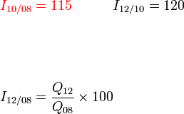 PeneranganKita juga boleh balik kepada asas indeks harga, iaitu perubahan peratus pada harga ◀Kita lukis satu gambarajah untuk menunjukkan perubahan harga ▼▶Dari 08 ke 10 ▼▶Dari 10 ke 12 ▼▶Dari 08 ke 12 ▼▶ ialah ▶ ialah ▶ ialah (JANGAN LUPA), maka▶Perhatikan apa cara pun yang kita gunakan, ▶Perhatikan apa cara pun yang kita gunakan, semak bahawa jawapan adalah logik ◀Jika mendapat indeks harga seperti 1.38 atau 13800, jelas ada kesilapan/terlupa dengan 100