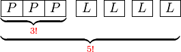 PeneranganIni bermaksud susunan adalahBaru diikuti denganBilangan cara menyusun 3 perempuan berlainanBilangan cara menyusun 3 perempuan berlainan di 3 tempatBilangan cara menyusun 4 lelaki berlainanBilangan cara menyusun 4 lelaki berlainan di 4 tempatJadi